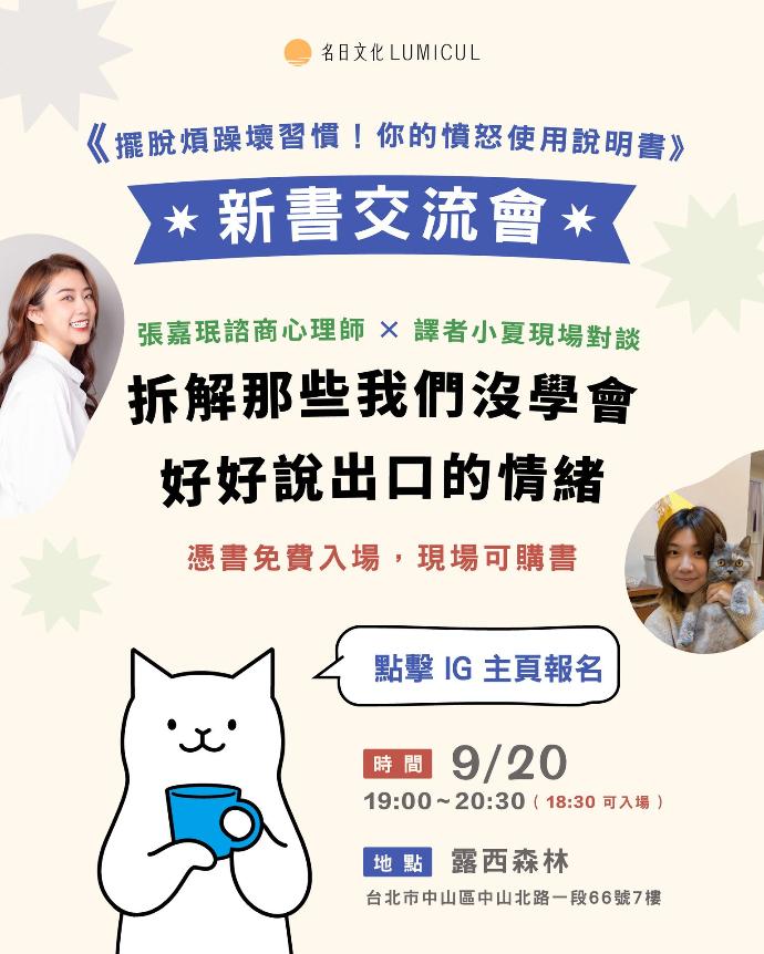 📍 時間:9/20(六)19:00~20:30(18:30可入場)