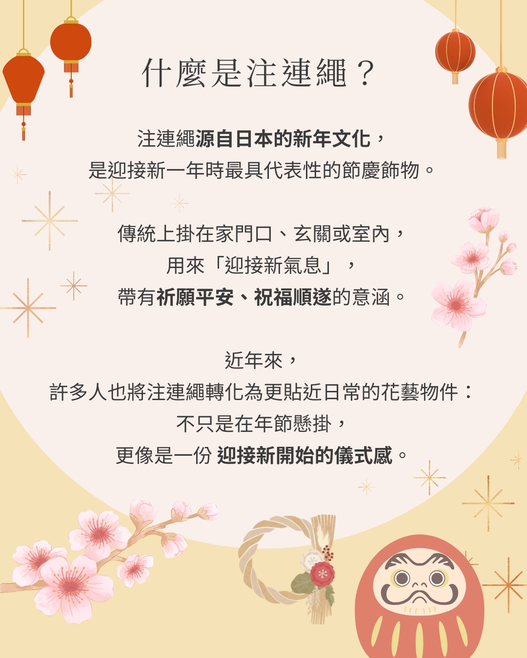 活動介紹: 〈好運入門|初學者迷你注連繩課〉是一堂為初學者打造的溫柔系手作體驗課 🎋✨。從介紹注連繩的文化背景開始,帶大家認識它象徵「祈福、迎接順遂」的意涵。分享迷你注連繩常見的配色與佈置方式,讓學員能更輕鬆掌握美感方向 🎨。最後安排拍照與交流時光 📸🤍,提供簡易拍照道具,讓大家記錄作品、互相分享靈感,也為自己的祈福創作留下美好的紀念。這是一堂能放鬆心情、享受創作、並把好運帶回家的療癒系工作坊。 🎀