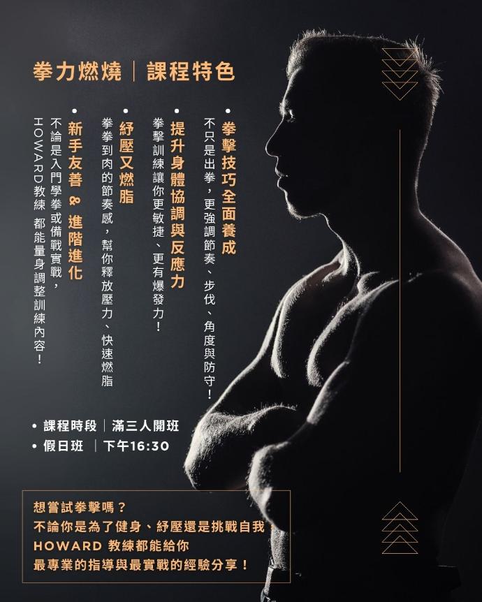 學習拳擊技巧、瘦身燃脂、紓壓發洩,還是想走進拳擊的世界一步步進階,Howard 都能帶你打好基本功、打出節奏感,打出自信!