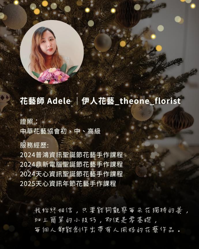 完成的聖誕樹,不只是作品,也可以是送給自己的禮物,也能成為傳遞心意的驚喜。願這兩小時,成為你十二月裡最溫暖、最療癒的時光。