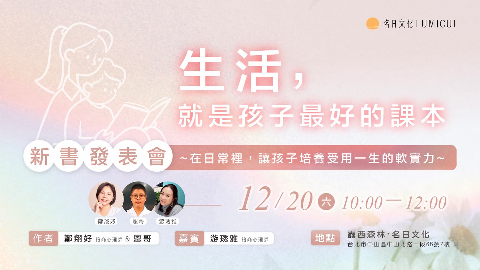 12/20 新書交流會【生活,就是孩子最好的課本】~在日常裡,讓孩子培養受用一生的軟實力~