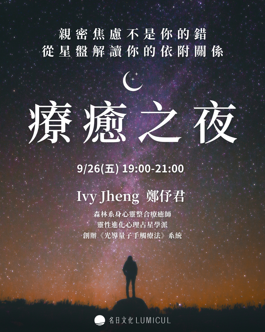 9/26 療癒之夜- 親密焦慮不是你的錯,從星盤解讀你的依附關係