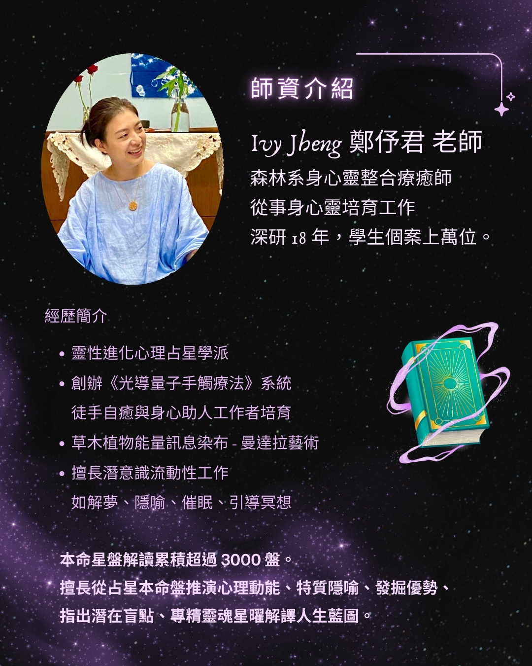單位備註: 森林系身心靈整合療癒師 | 鄭伃君 Ivy Jheng 老師